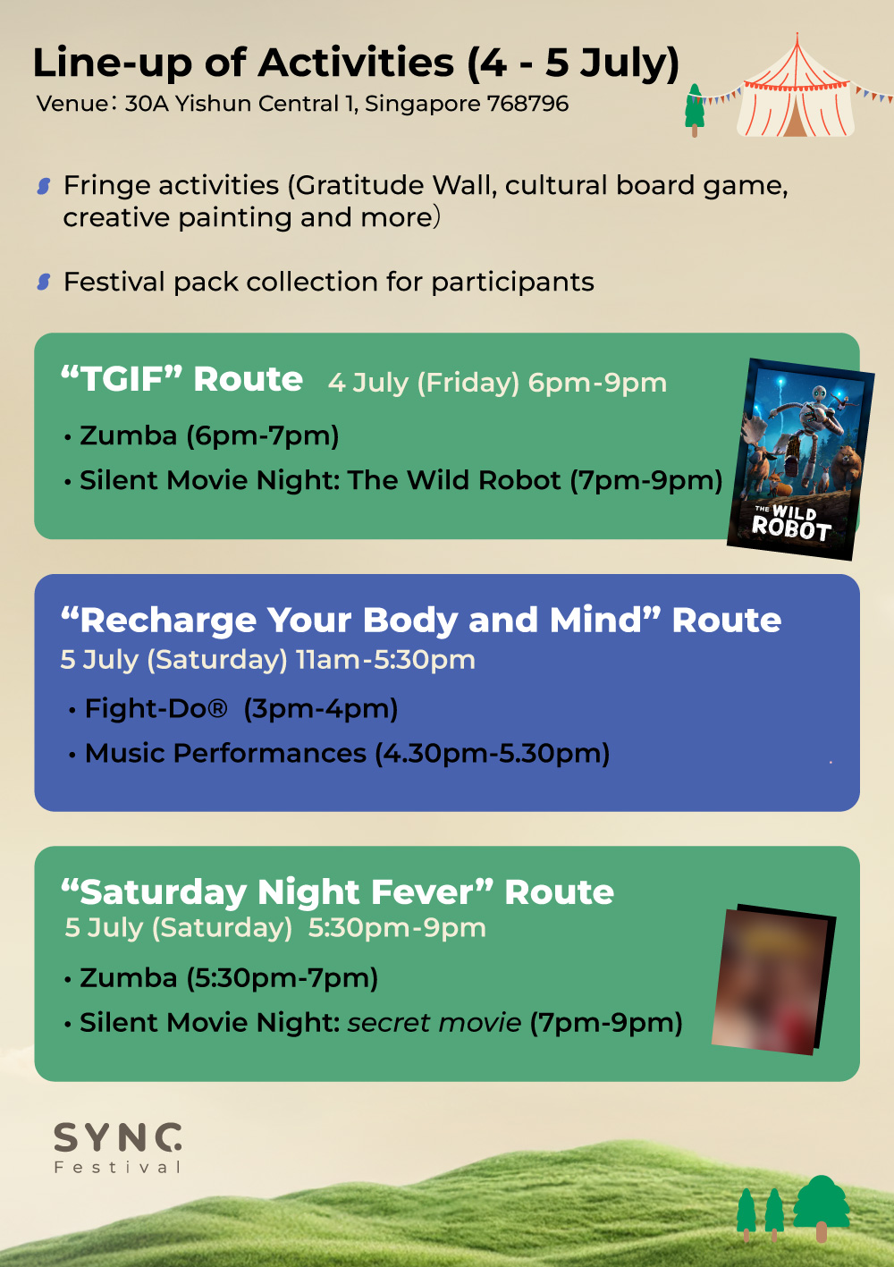During the two days leading up to the main showcase, we’ll be hosting free pre-event activities at the Tzu Chi Humanistic Youth Centre. These activities are open to the public. Participants who have registered for the Fam Walk and Youth Quest can also collect their festival packs during this time.